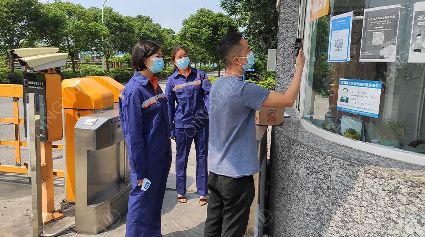 figure3 Volunteers of QYJSSA checking the temperature of outsiders at the FUBAO Plant gate